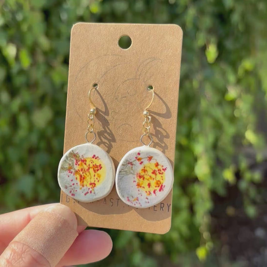 This eye-catching earrings is reminiscent of the mid autumn moonlight in the night with just enough of the maples leaves in the midst of changing colors. A poetic pair of earrings that is guaranteed to be one of a kind.