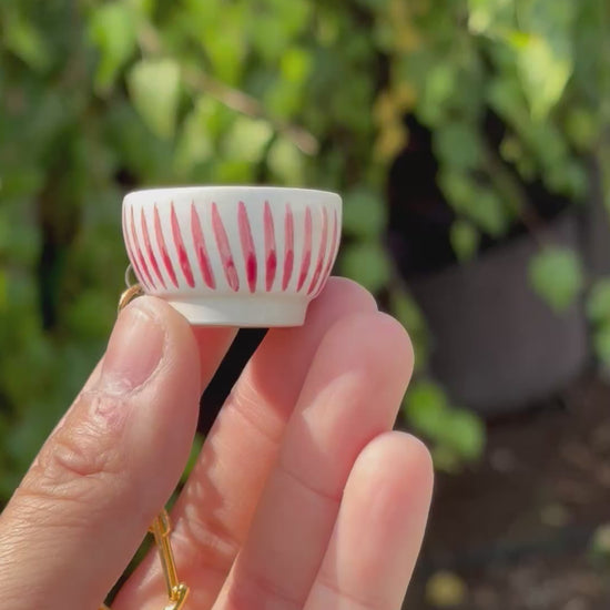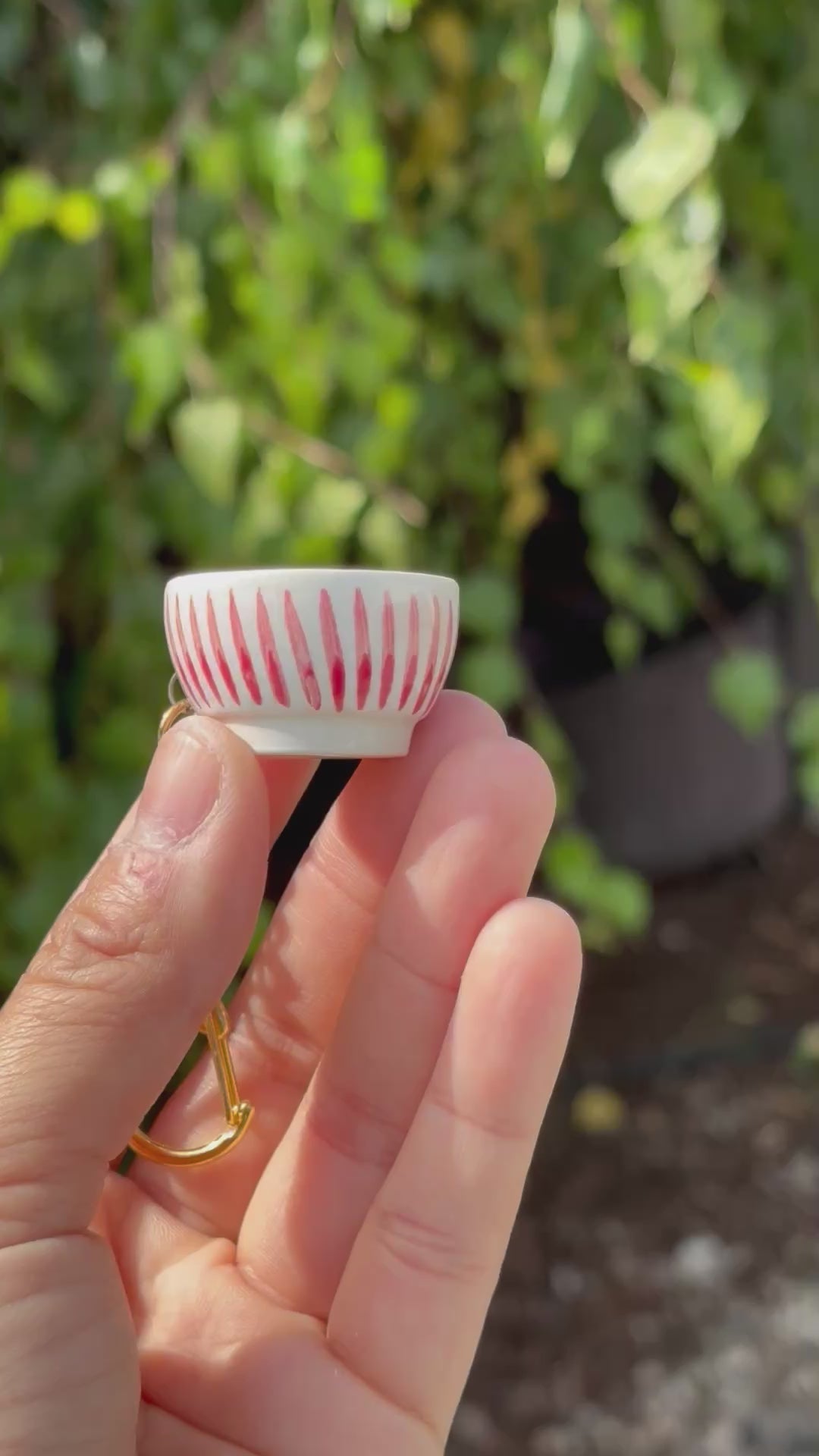 The perfect little tea bowl charm for your purses or keys! This wheel thrown charm with a trimmed foot and bunny logo at the bottom is the best way to add a little tea ritual into your day to day life!